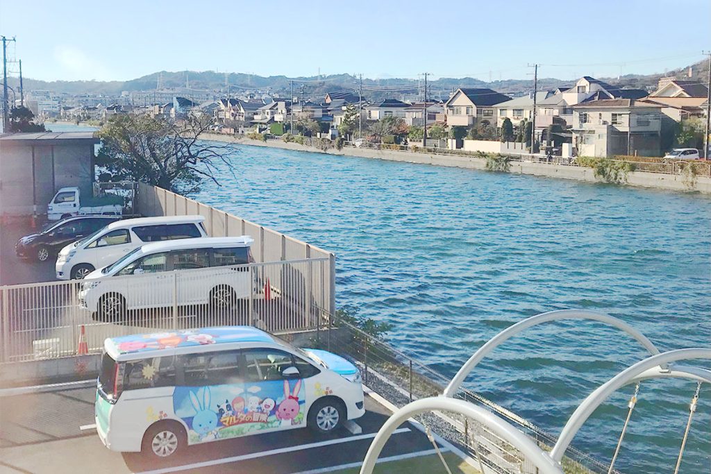 窓の外にはゆるやかな水の流れと広い空。向かい側には公園。八景島シーパラダイスや金沢動物園など、子どもとご家族が楽しめる場所も近場にあります。